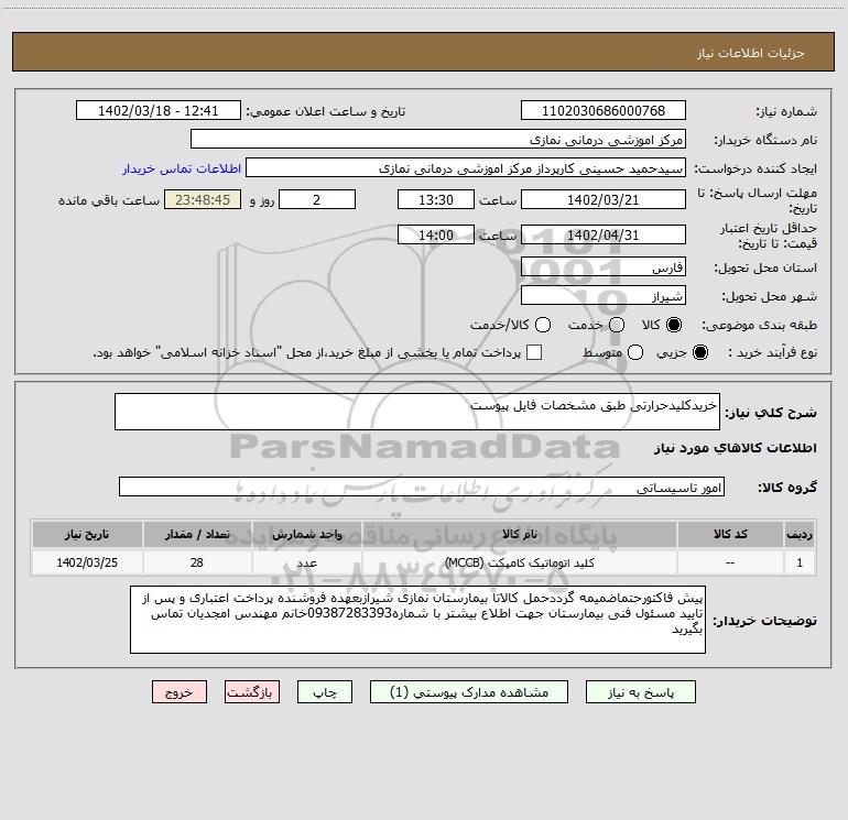 نام دستگاه خریدار:مرکز اموزشی درمانی نمازی
