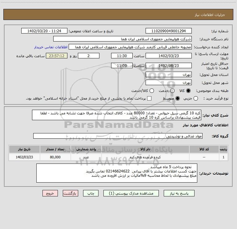 شرح کلی نیاز: کره 10 گرمی سیل حیوانی - تعداد: 80000 عدد - کالای انتخاب شده صرفا جهت تشابه می باشد - لطفا قیمت پیشنهادی براساس کره 10 گرمی باشد