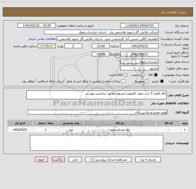 نام دستگاه خریدار:شرکت پالایش گاز شهید هاشمی نژاد استان خراسان رضوی