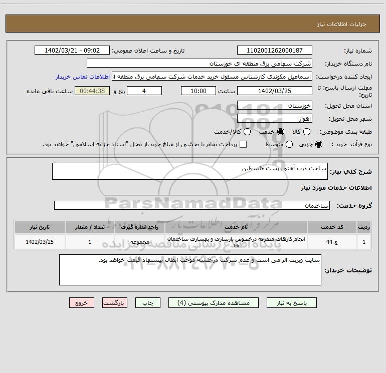 شرح کلی نیاز: ساخت درب آهنی پست فلسطین