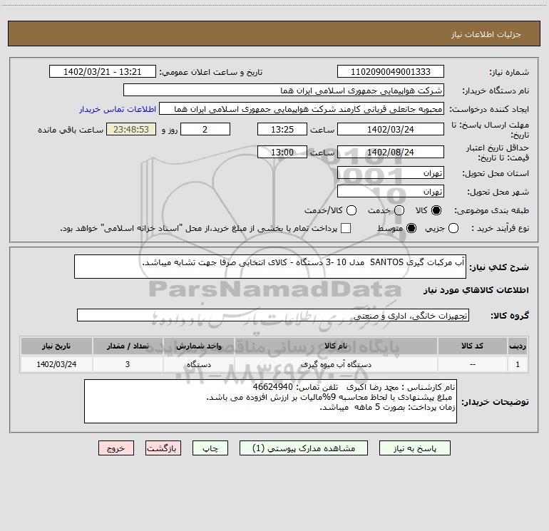 نام دستگاه خریدار:شرکت هواپیمایی جمهوری اسلامی ایران هما