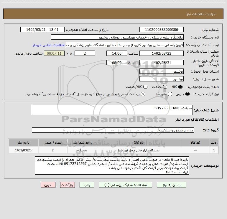 شرح کلی نیاز: سونیکید EDAN مدل SD5