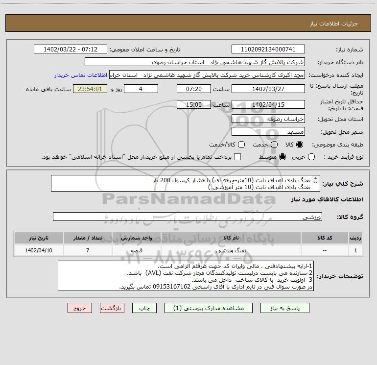 نام دستگاه خریدار:شرکت پالایش گاز شهید هاشمی نژاد استان خراسان رضوی
