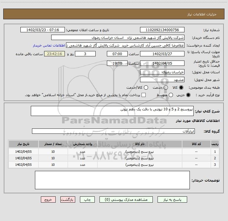 نام دستگاه خریدار:شرکت پالایش گاز شهید هاشمی نژاد استان خراسان رضوی