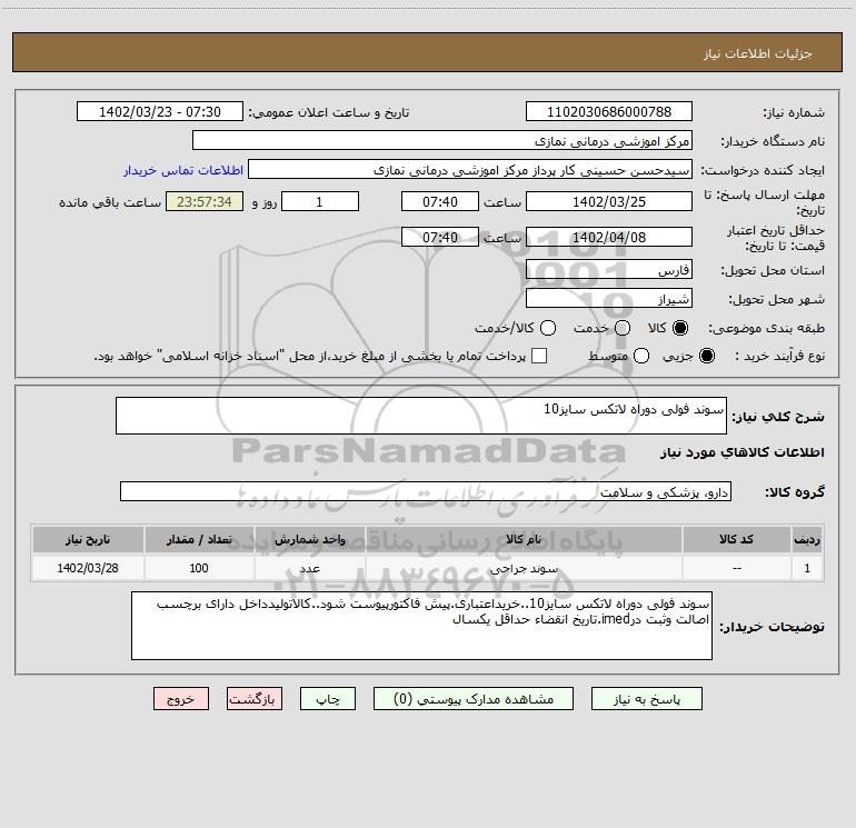 شرح کلی نیاز: سوند فولی دوراه لاتکس سایز10