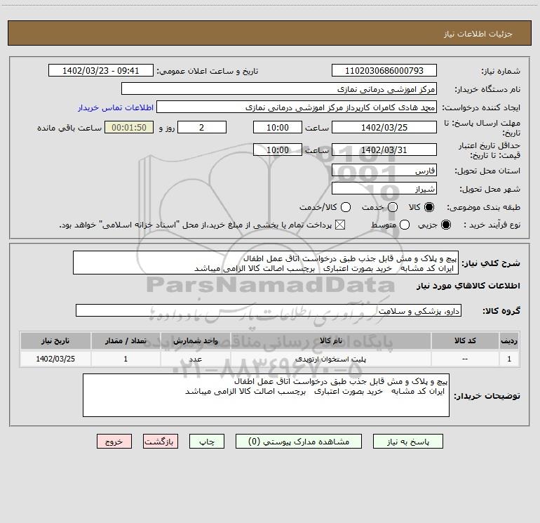 نام دستگاه خریدار:مرکز اموزشی درمانی نمازی