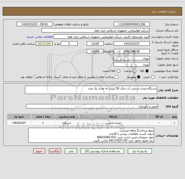 نام دستگاه خریدار:شرکت هواپیمایی جمهوری اسلامی ایران هما