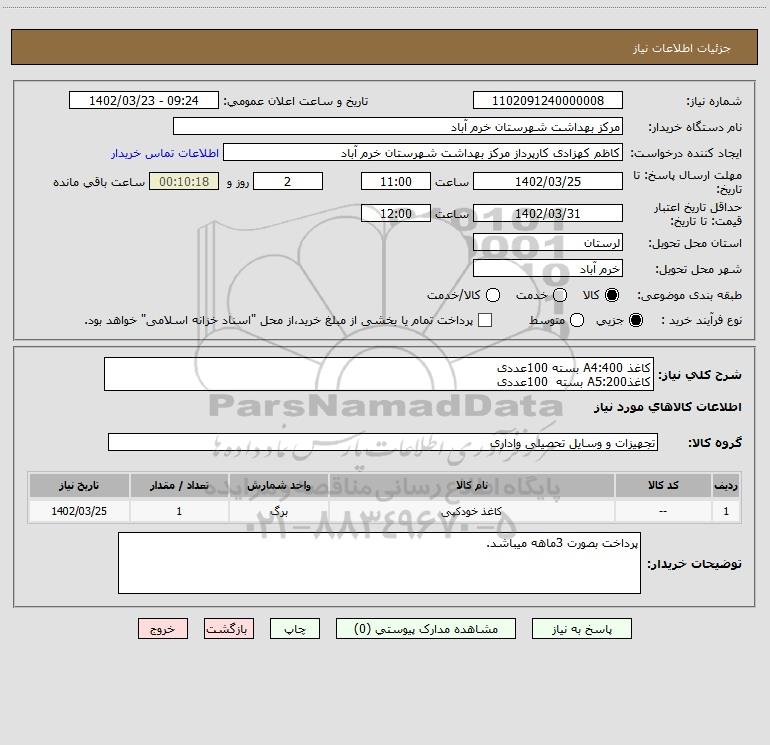 نام دستگاه خریدار:مرکز بهداشت شهرستان خرم آباد