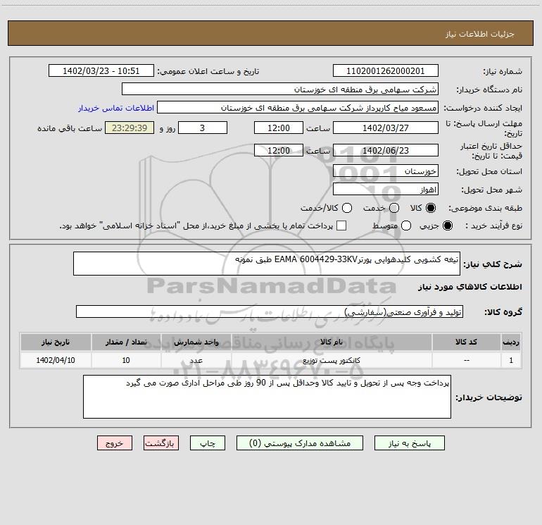 نام دستگاه خریدار:شرکت سهامی برق منطقه ای خوزستان