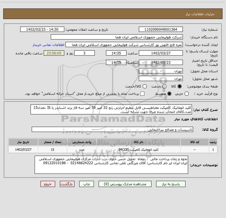 نام دستگاه خریدار:شرکت هواپیمایی جمهوری اسلامی ایران هما