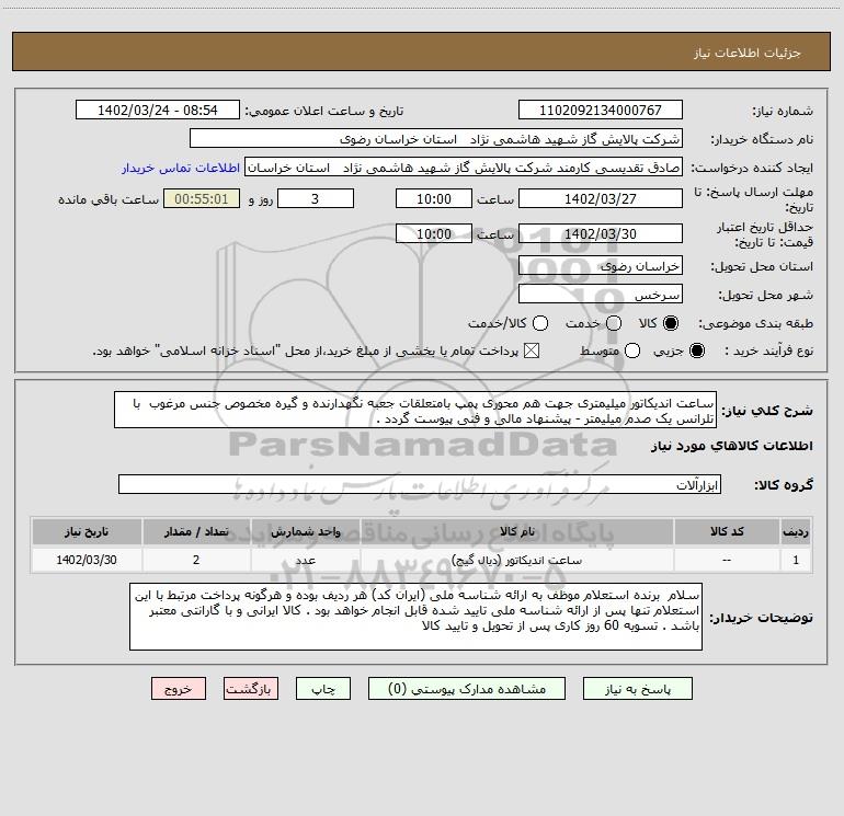 نام دستگاه خریدار:شرکت پالایش گاز شهید هاشمی نژاد استان خراسان رضوی