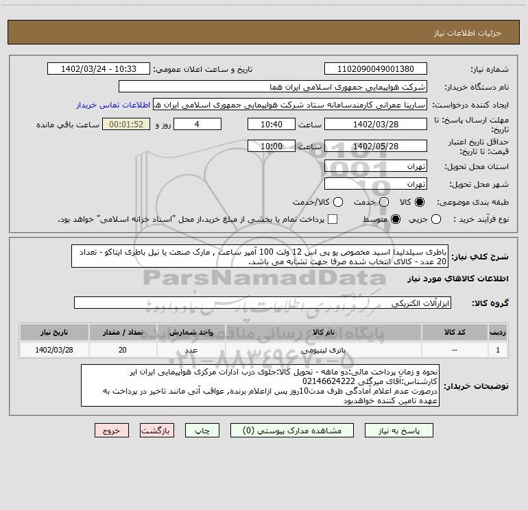 | 1 | -- | باتری لیتیومی | عدد | 20 | 1402/03/28 |