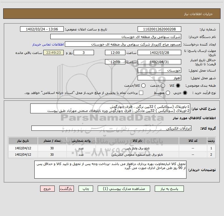 نام دستگاه خریدار:شرکت سهامی برق منطقه ای خوزستان
