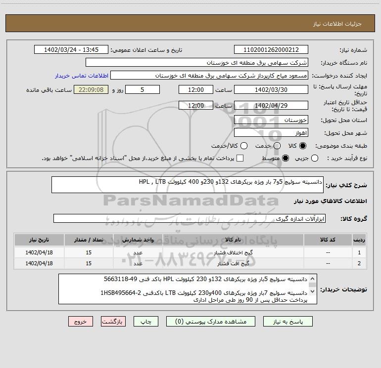 نام دستگاه خریدار:شرکت سهامی برق منطقه ای خوزستان