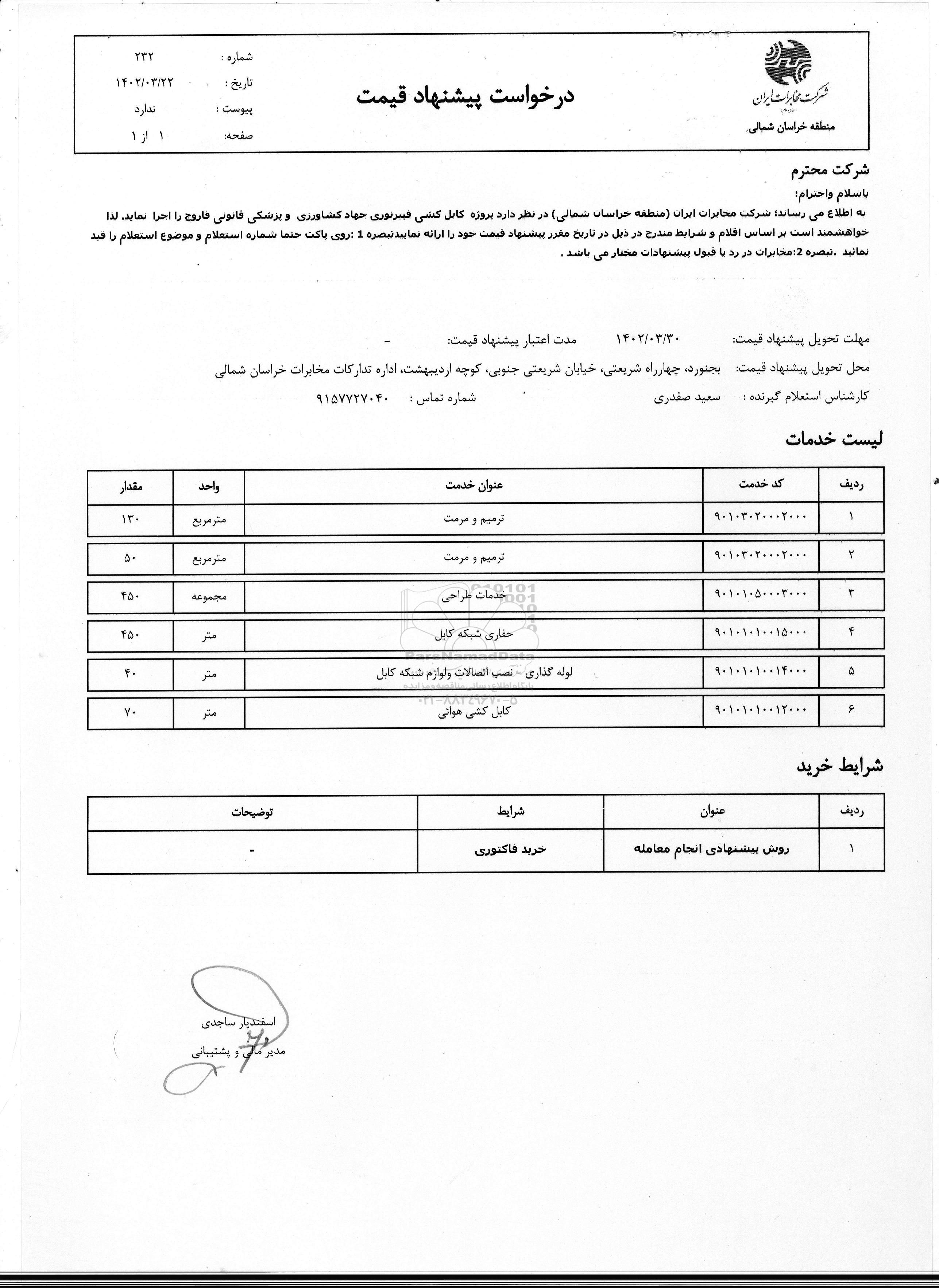 مهلت تحویل پیشنهاد قیمت: 1402.3.30
