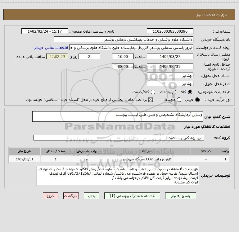 نام دستگاه خریدار:دانشگاه علوم پزشکی و خدمات بهداشتی درمانی بوشهر