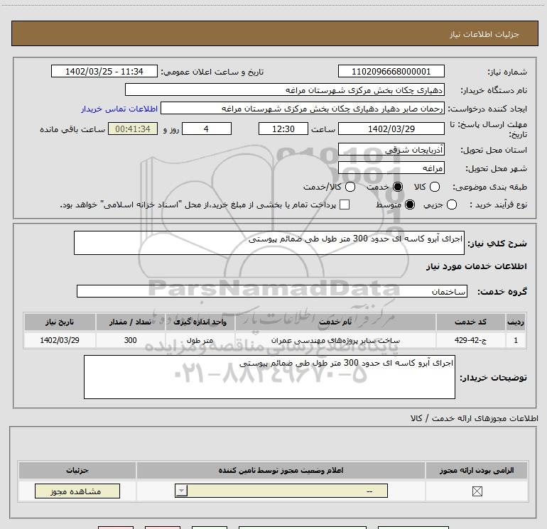 توضیحات خریدار:اجرای آبرو کاسه ای حدود 300 متر طول طی ضمائم پیوستی