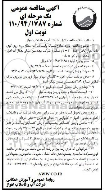 مناقصه اصلاح شبکه و انشعابات آب منطقه زویه روبروی کوی ملت , مناقصه , مناقصه اصلاح شبکه و انشعابات آب منطقه زویه روبروی کوی ملت نوبت اول