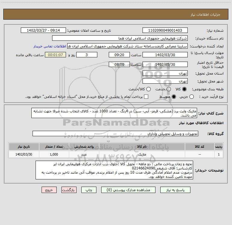 نام دستگاه خریدار:شرکت هواپیمایی جمهوری اسلامی ایران هما