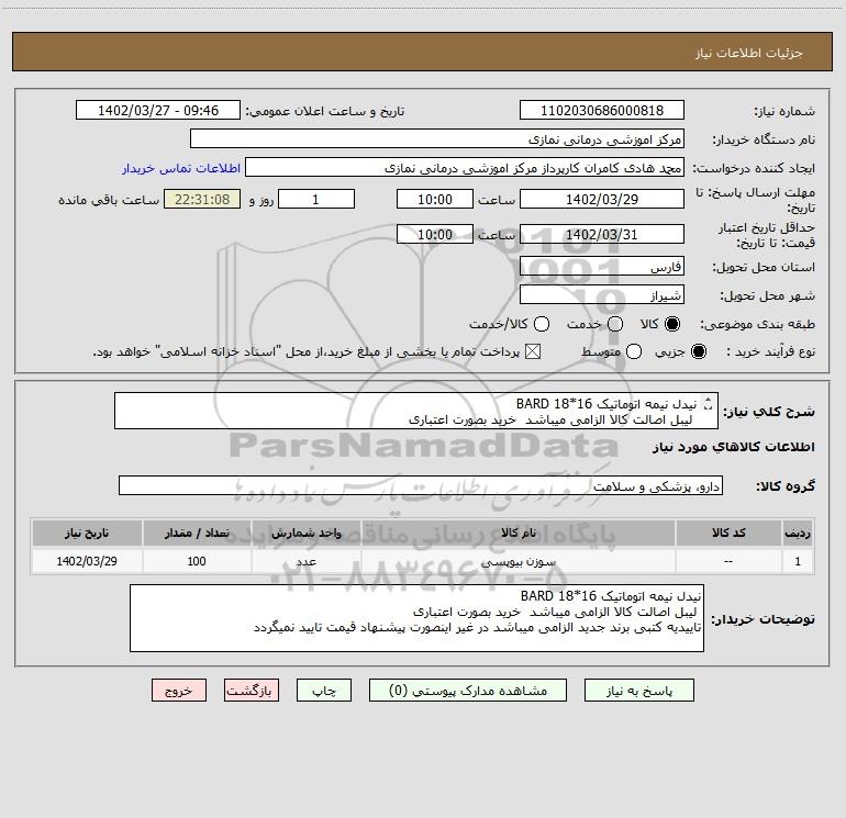 نام دستگاه خریدار:مرکز اموزشی درمانی نمازی