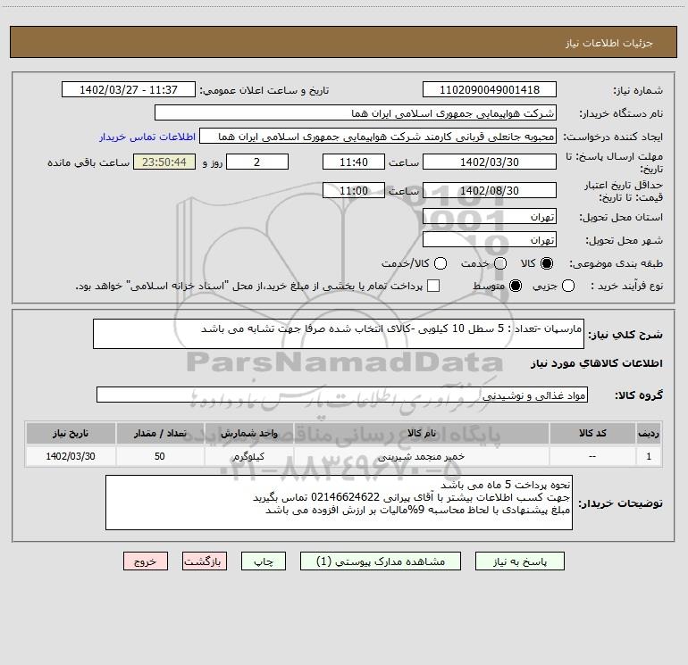 نام دستگاه خریدار:شرکت هواپیمایی جمهوری اسلامی ایران هما