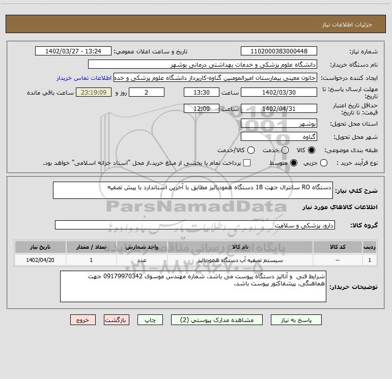 نام دستگاه خریدار:دانشگاه علوم پزشکی و خدمات بهداشتی درمانی بوشهر