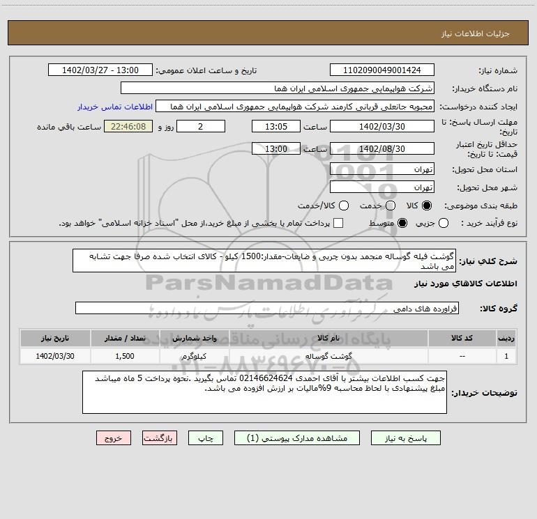 نام دستگاه خریدار:شرکت هواپیمایی جمهوری اسلامی ایران هما