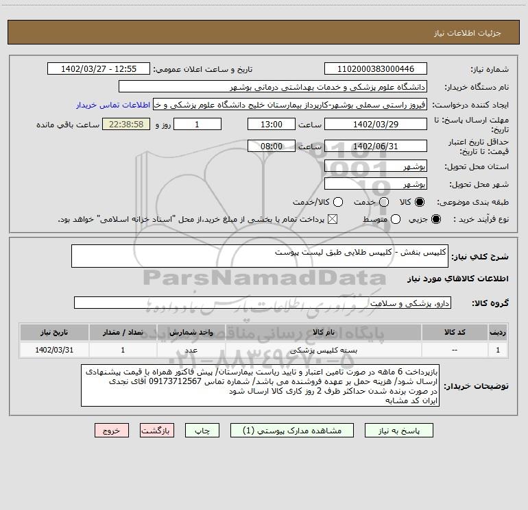 شرح کلی نیاز: کلیپس بنفش - کلیپس طلایی طبق لیست پیوست