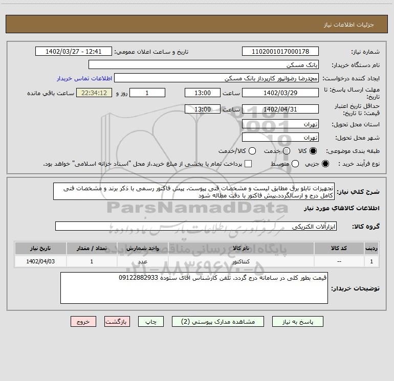 شرح کلی نیاز: تجهیزات تابلو برق مطابق لیست و مشخصات قنی پیوست. پیش فاکتور رسمی با ذکر برند و مشخصات فنی کامل درج و ارسالگردد.پیش فاکتور با دقت مطاله شود