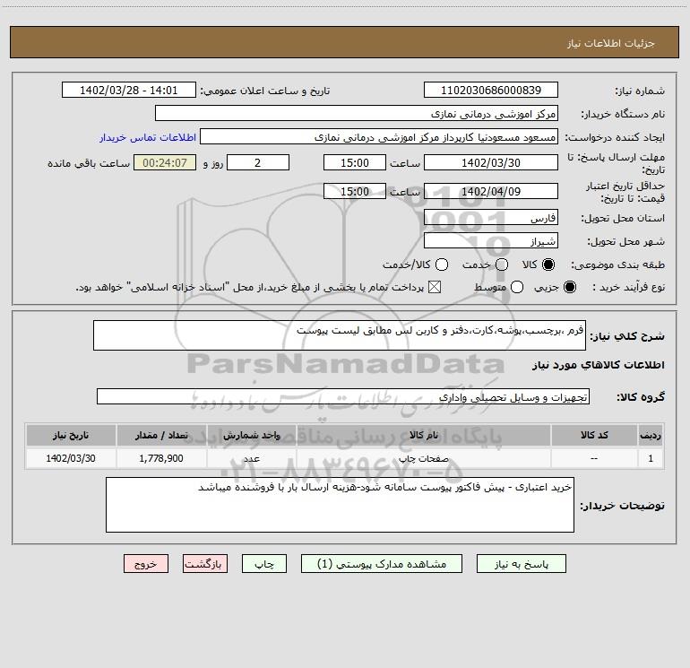 نام دستگاه خریدار:مرکز اموزشی درمانی نمازی