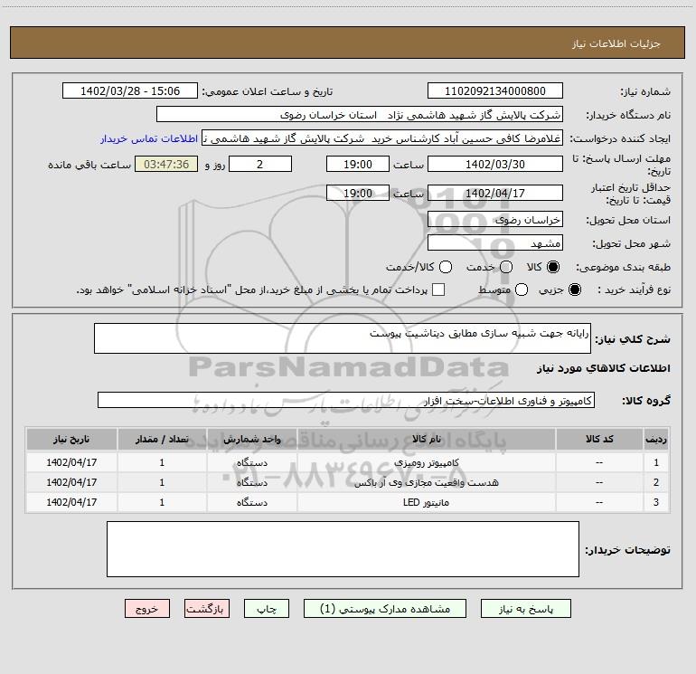 نام دستگاه خریدار:شرکت پالایش گاز شهید هاشمی نژاد استان خراسان رضوی