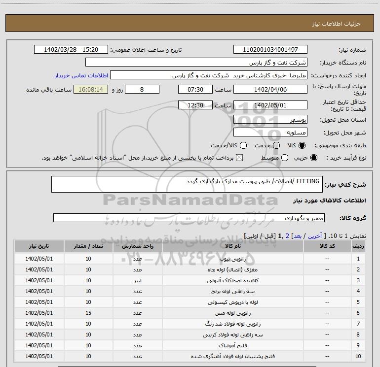 شرح کلی نیاز: FITTING /اتصالات/ طبق پیوست مدارک بارگذاری گردد