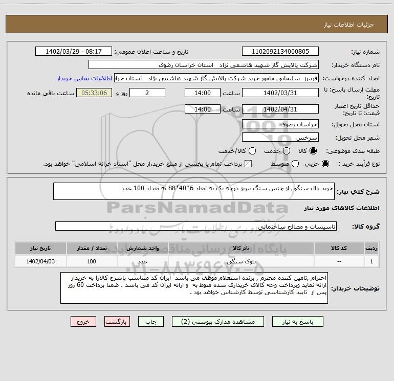 نام دستگاه خریدار:شرکت پالایش گاز شهید هاشمی نژاد استان خراسان رضوی
