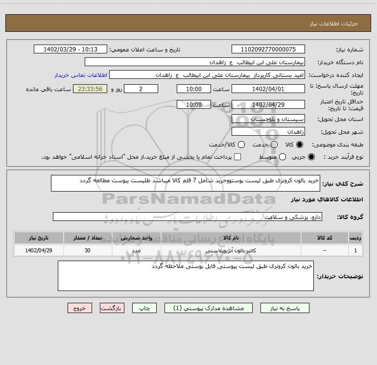 نام دستگاه خریدار:بیمارستان علی ابن ابیطالب ع زاهدان