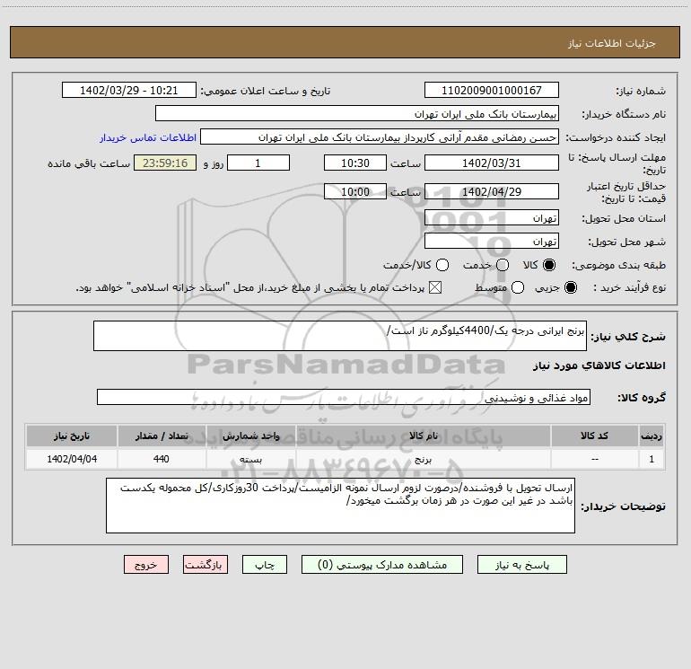 شرح کلی نیاز: برنج ایرانی درجه یک/4400کیلوگرم ناز است/