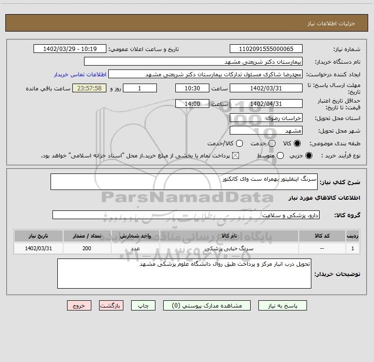 نام دستگاه خریدار:بیمارستان دکتر شریعتی مشهد