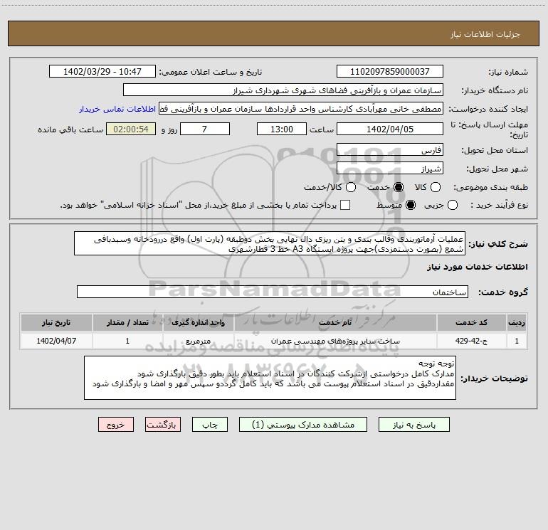 نام دستگاه خریدار:سازمان عمران و بازآفرینی فضاهای شهری شهرداری شیراز
