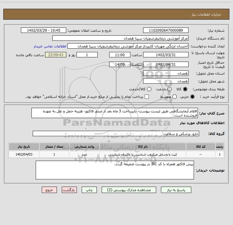 نام دستگاه خریدار:مرکز آموزشی درمانیفرشچیان سینا همدان