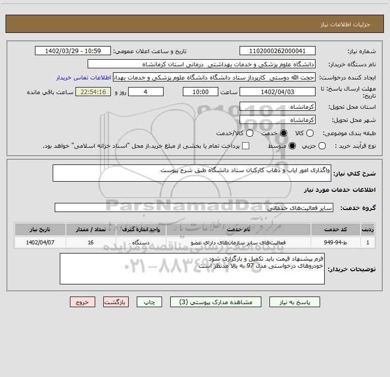 شرح کلی نیاز: واگذاری امور ایاب و ذهاب کارکنان ستاد دانشگاه طبق شرح پیوست