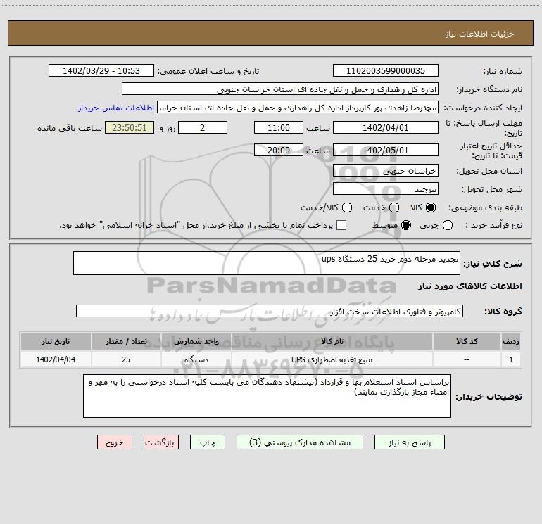 شرح کلی نیاز: تجدید مرحله دوم خرید 25 دستگاه ups