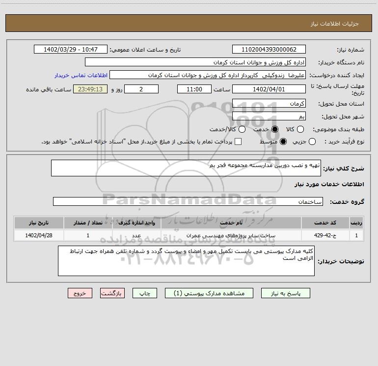 نام دستگاه خریدار:اداره کل ورزش و جوانان استان کرمان