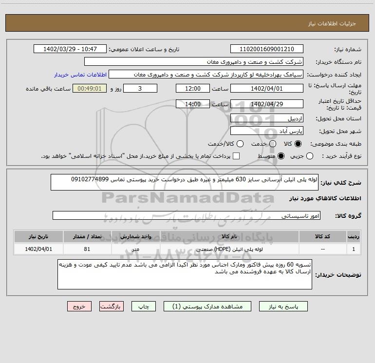نام دستگاه خریدار:شرکت کشت و صنعت و دامپروری مغان