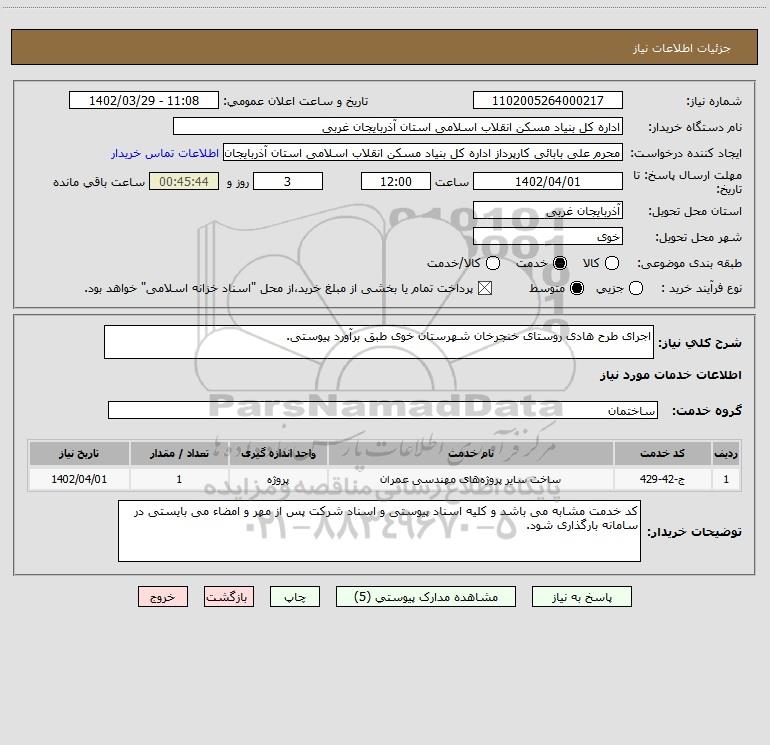 شرح کلی نیاز: اجرای طرح هادی روستای خنجرخان شهرستان خوی طبق برآورد پیوستی.
