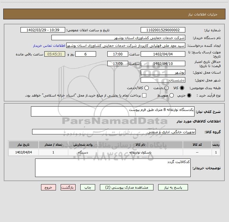 نام دستگاه خریدار:شرکت خدمات حمایتی کشاورزی استان بوشهر
