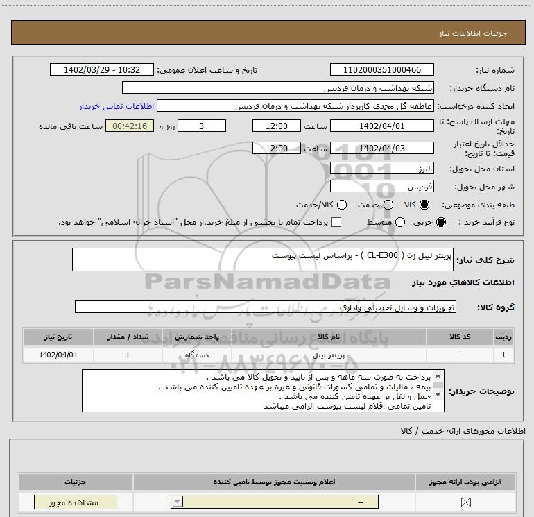 استعلام پرینتر لیبل زن ( CL-E300 ) - براساس لیست پیوست, استعلام پرینتر لیبل زن ( CL-E300 ) - براساس لیست پیوست