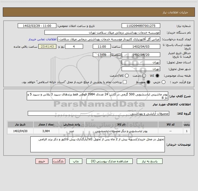 نام دستگاه خریدار:موسسه خدمات بهداشتی درمانی میلاد سلامت تهران