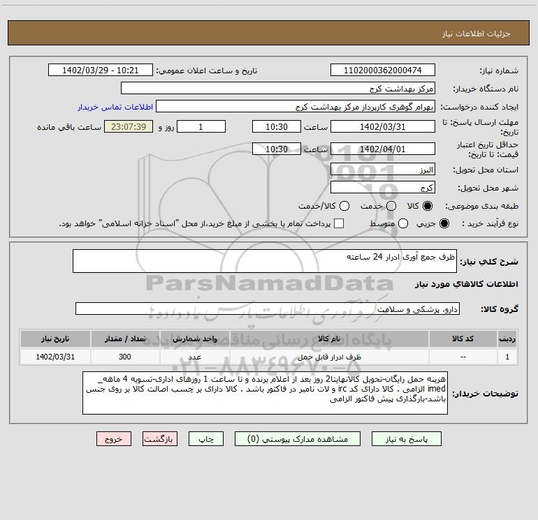 شرح کلی نیاز: ظرف جمع آوری ادرار 24 ساعته