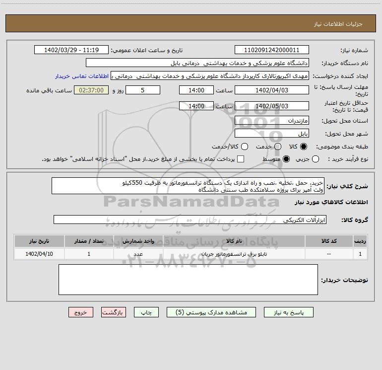 استعلام خرید، حمل ،تخلیه ،نصب و راه اندازی یک دستگاه ترانسفورماتور به ظرفیت 550کیلو ولت آمپر برای پروژه سلامتکده طب سنتی دانشگاه, استعلام خرید، حمل ،تخلیه ،نصب و راه اندازی یک دستگاه ترانسفورماتور به ظرفیت 550کیلو ولت آمپر برای پروژه سلامتکده طب سنتی دانشگاه