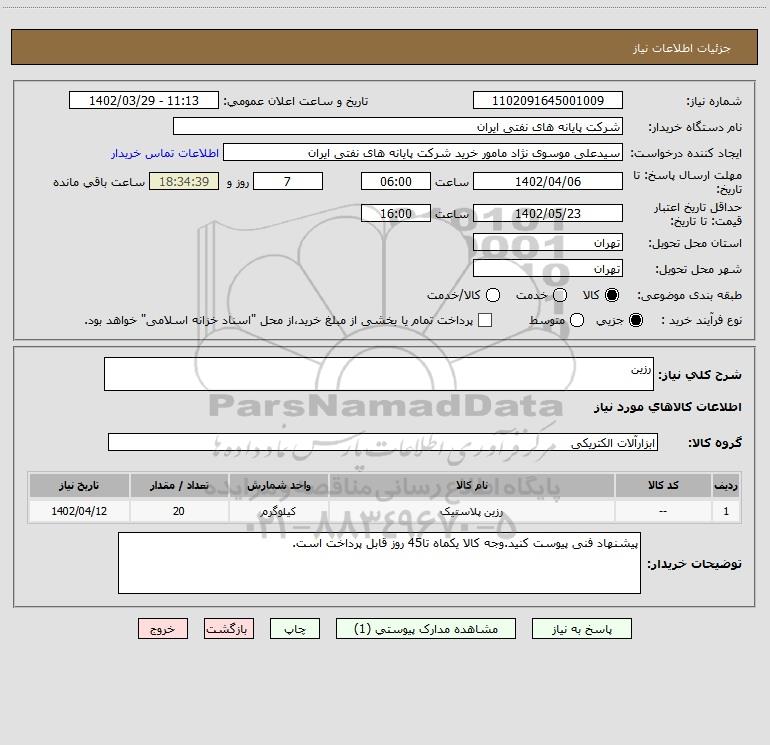 | 1 | -- | رزین پلاستیک | کیلوگرم | 20 | 1402/04/12 |
