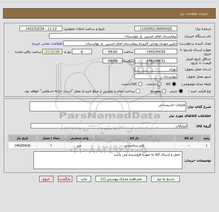 | 1 | -- | کابل ساختمانی | متر | 1 | 1402/04/10 |